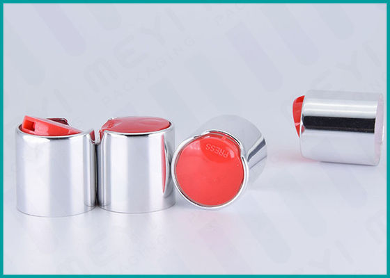 24mm Aluminum Disc Top Cap Glossy Silver With Red Actuator For Body Wash Gel